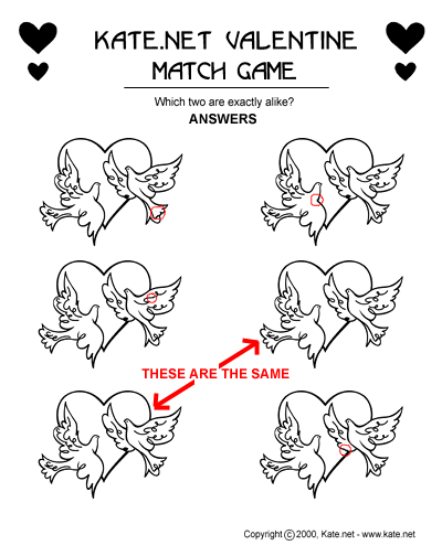 Valentine Printable: Matching Game Answer